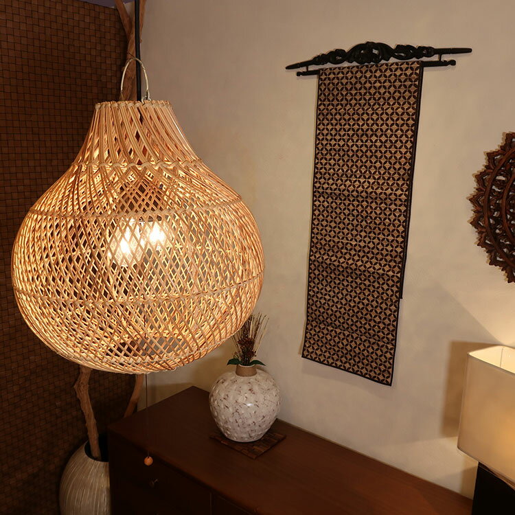 送料無料 ラタンシェードランプ クロスドロップ 2灯式 リビング アジアン雑貨 おしゃれ ライト インテリア リゾート バリ雑貨 和室 ペンダントライト 玄関 和モダン レトロ 天井照明 ラタン 照明器具 ダイニング 2灯 取り付け簡単 簡単取付 雫型 【51018】