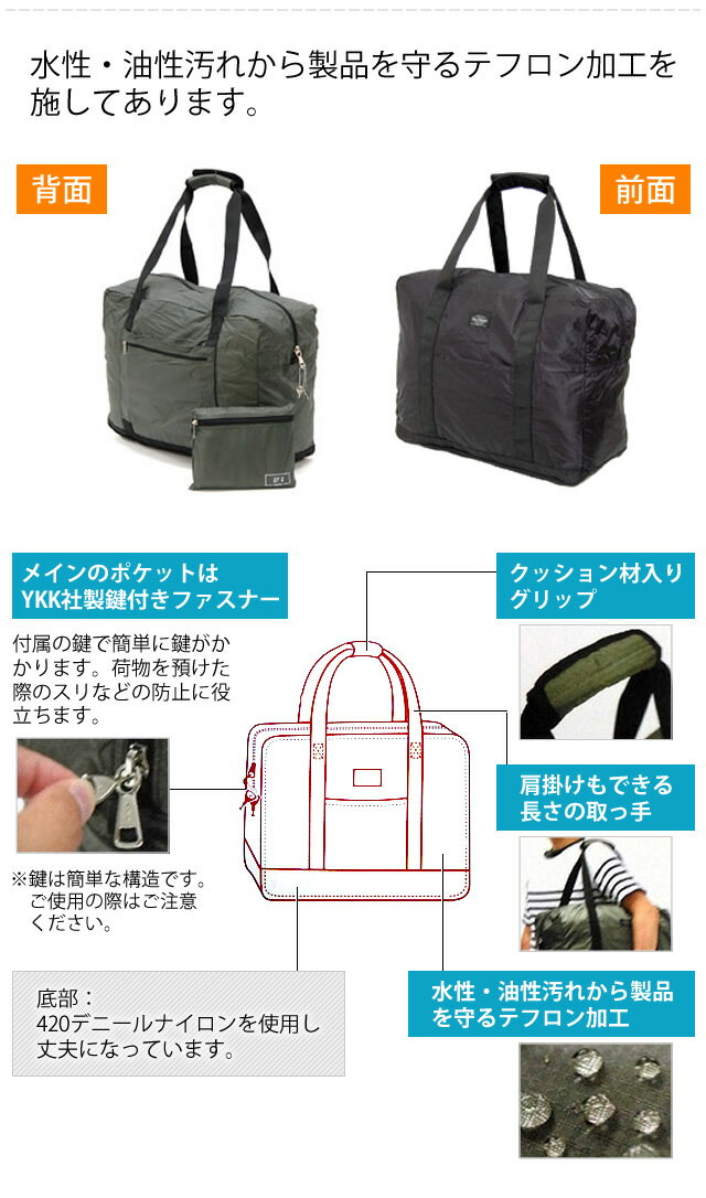 キャリーバーに通せる、軽くて丈夫な折りたたみバッグです。